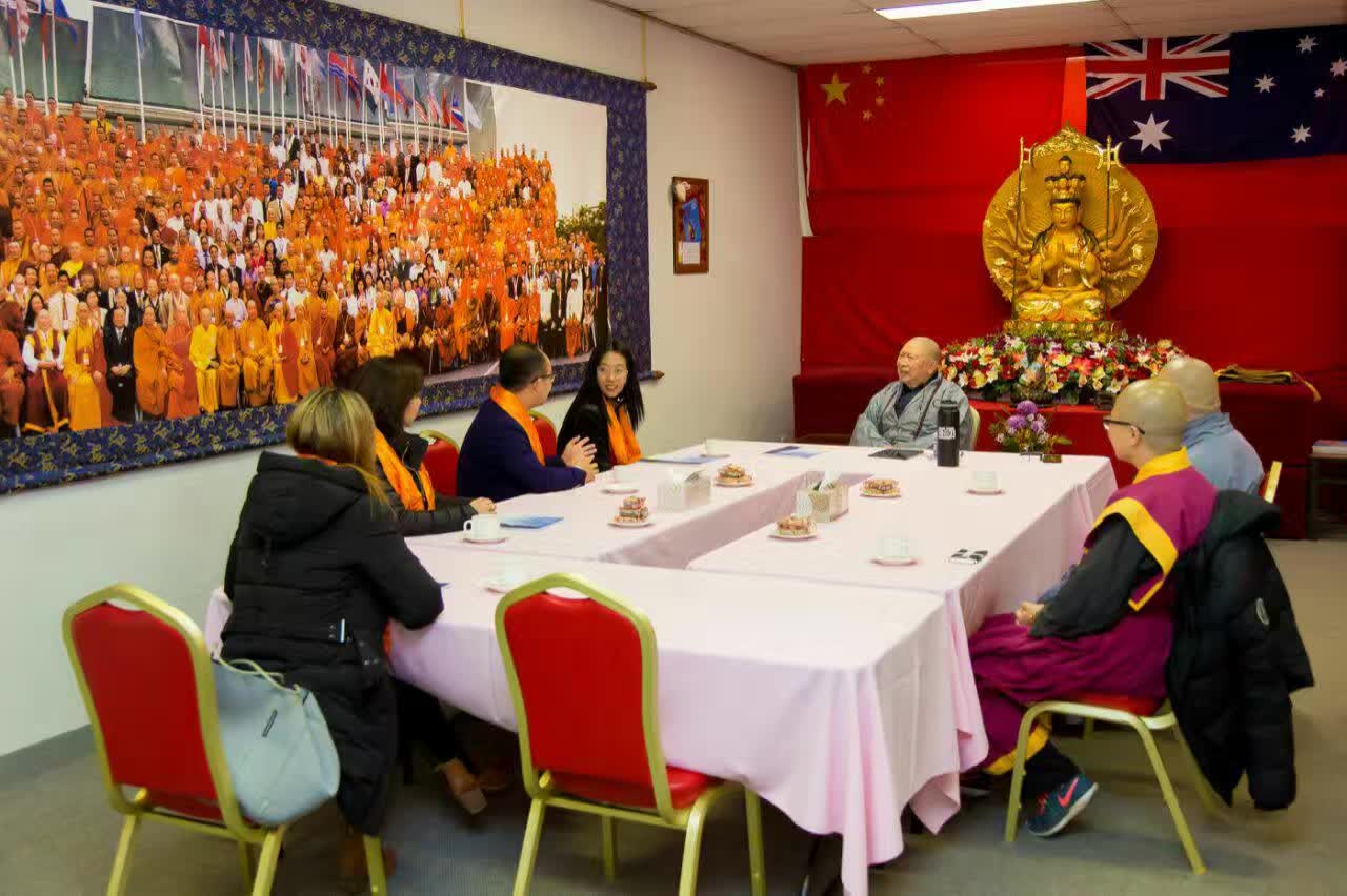 今 天 上 午 澳 大 利 亞 福 建 鄉 情 聯 誼 會 會 長 林 綿 珊 女 士 , 塔 州 分 會 會 長 徐 哲 先 生 , 等 一 行 四 人 參 訪 澳 大 利 亞 塔 州 中 國 佛 教 學 院 。