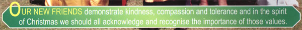 我 們 的 新 朋 友 們 示 範 慈 悲 和 包 容 。 我 們 所 有 人 都 應 以 聖 誕 節 的 精 神 , 承 認 、 認 同 那 些 價 值 觀 的 重 要 性 。