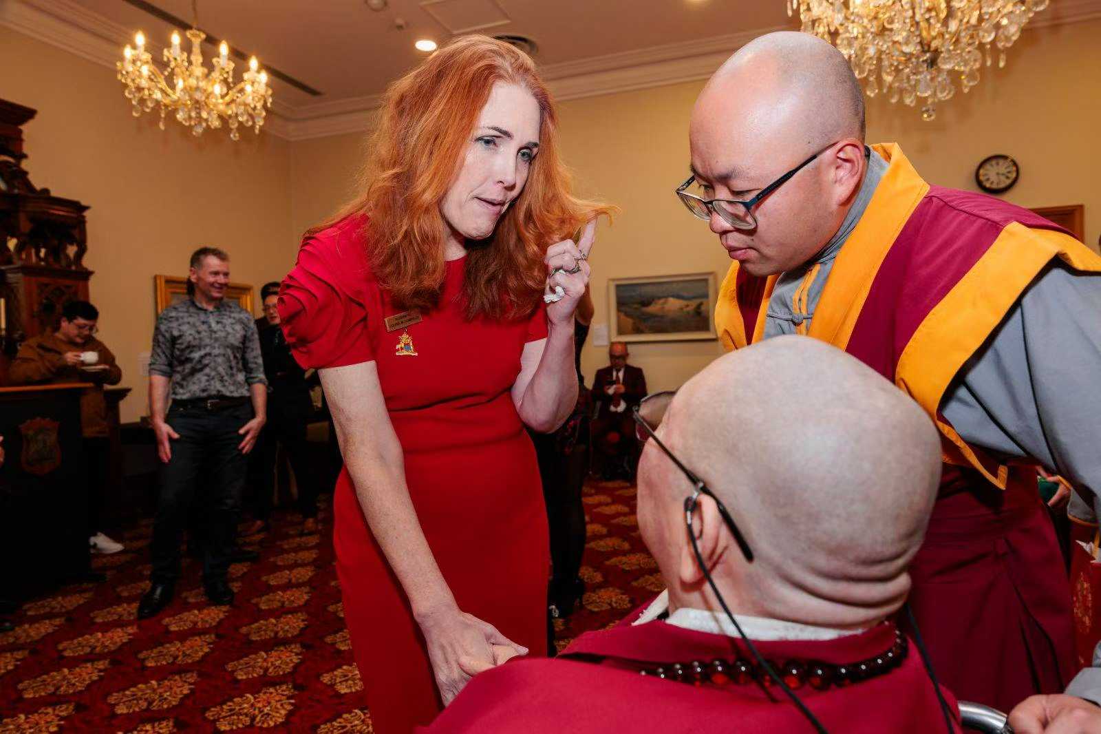 中华人民共和国驻墨尔本总领馆房新文总领事出席,并发表重要讲话,还有霍巴特市长代表 更让人难忘的是,这是中国国旗首次在澳洲塔州首府霍巴特市政厅门前举行了升旗仪式,意义深远。 弟子以前每次来到霍巴特的市政厅都是进入有表演台的主厅,这一次市政厅进门口的侧边打开了一扇专门的房间来举办这一次隆重的活动。 活动开始之前,弟子们保持威仪,恭敬地站在客厅里等待,与会嘉宾们在轻松的聊天等待会议开始。那时候,房新文总领事专门来到了金刚子甄小转世者的面前,喜欢关切地说:「这一个小沙弥,后继有人啊!」弟子也很法喜,这也是金刚子甄小转世者作为龙的传人,参与 薄伽梵 师尊带领的圣密僧团无声弘法活动的圣缘。 房新文总领事问她今年多大了?弟子说她今年四岁。总领事赞叹说:作为一个四岁的孩子,她的个子已经很大了。 感恩 师父慈悲恩赐金刚子甄小转世者和 师父爷爷和总领事等贵宾、金刚永诚七世小转世者合影留念。弟子感到子甄在 师父爷爷的加持下获得灵性的提升,越来越成熟。 弟子感到,作为一个转世者,每一次参与弘法活动,对于她的人生成长、对于肩负的历史使命、对于修行目标的认识很重要。她落了发,显僧伽相,在 薄伽梵 师尊加持下,显示出圣密转世者的庄严、可爱和正能量,为有缘众生带来欢喜。相信她会明白自己是为了救度众生而来,在 师父爷爷的宇宙灵性加持爱护下,努力完成她的历史使命。 感恩 师父的慈悲加持和恩赐! ![]() Copyright © 1991- Jin-Gang-Dhyana Incorporated ![]() |