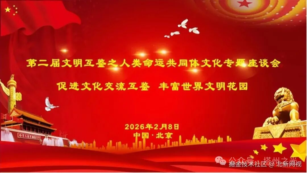 文明對話聚共識,互鑑共生向未來。2026年2月8日,由華夏文化促進會文化產業工作委員會主辦的第二屆文明互鑑之人類命運共同體文化專題座談會在北京隆重召開。本次會議以〝促進文化交流互鑑﹒豐富世界文明花園〞為主題,匯聚政府部門、學術機構、文化界等領域的領導嘉賓與業界同仁,通過主旨演講、視頻分享、倡議宣讀等形式,深入踐行全球文明倡議,為推動構建人類命運共同體注入深厚文化力量。
