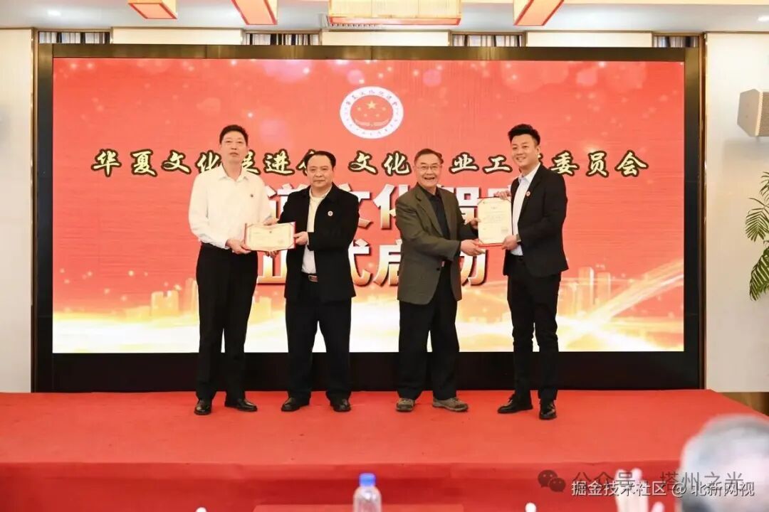 文化旅遊部機關黨委原常務副書記劉長權為執行副會長李曉明先生頒發聘書,華夏文化促進會文化產業工作委員會會長陳勝祥為周代松先生頒發了副會長聘書!